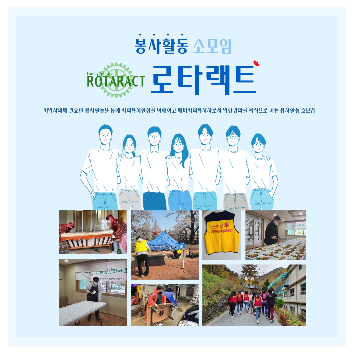 지역사회에 필요한 봉사활동을 통해 지역사회발전에 기여하고 예비사회복지사로서 역량강화를 목적으로 봉사활동을 함.